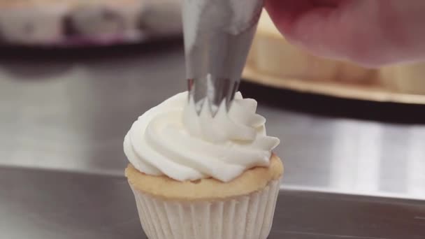 Bolo De Bolo Decorado Com Chantilly Creme Sqeezed De Saco De